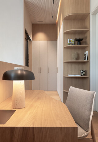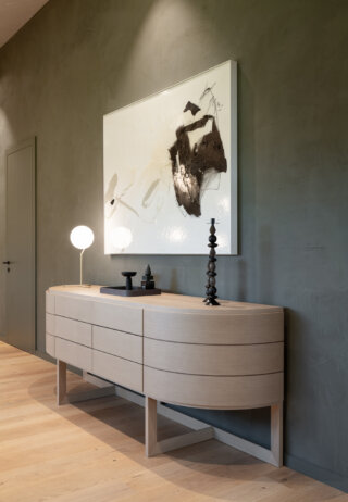 Das Ergebnis ist ein homogenes und ruhiges Raumkonzept, das Natürlichkeit, Funktionalität und Wohnlichkeit in Einklang bringt.