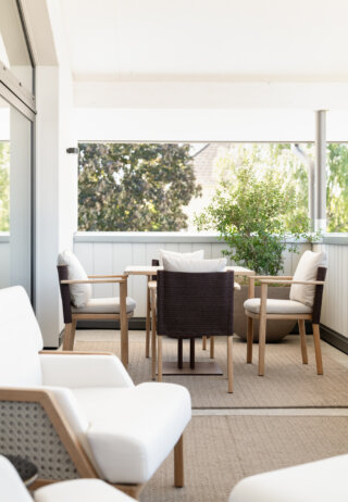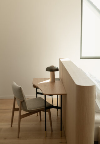 Das Gestaltungskonzept folgt einer skandinavisch inspirierten Linie: helle, natürliche Farben bilden die Basis, sanfte Grün- und Terracottatöne setzen dezente Akzente. Schwarze Details sorgen für elegante Kontraste, während unterschiedliche Materialien – Holz, Keramik und feine Textilien – die ruhige Umgebung subtil strukturieren.